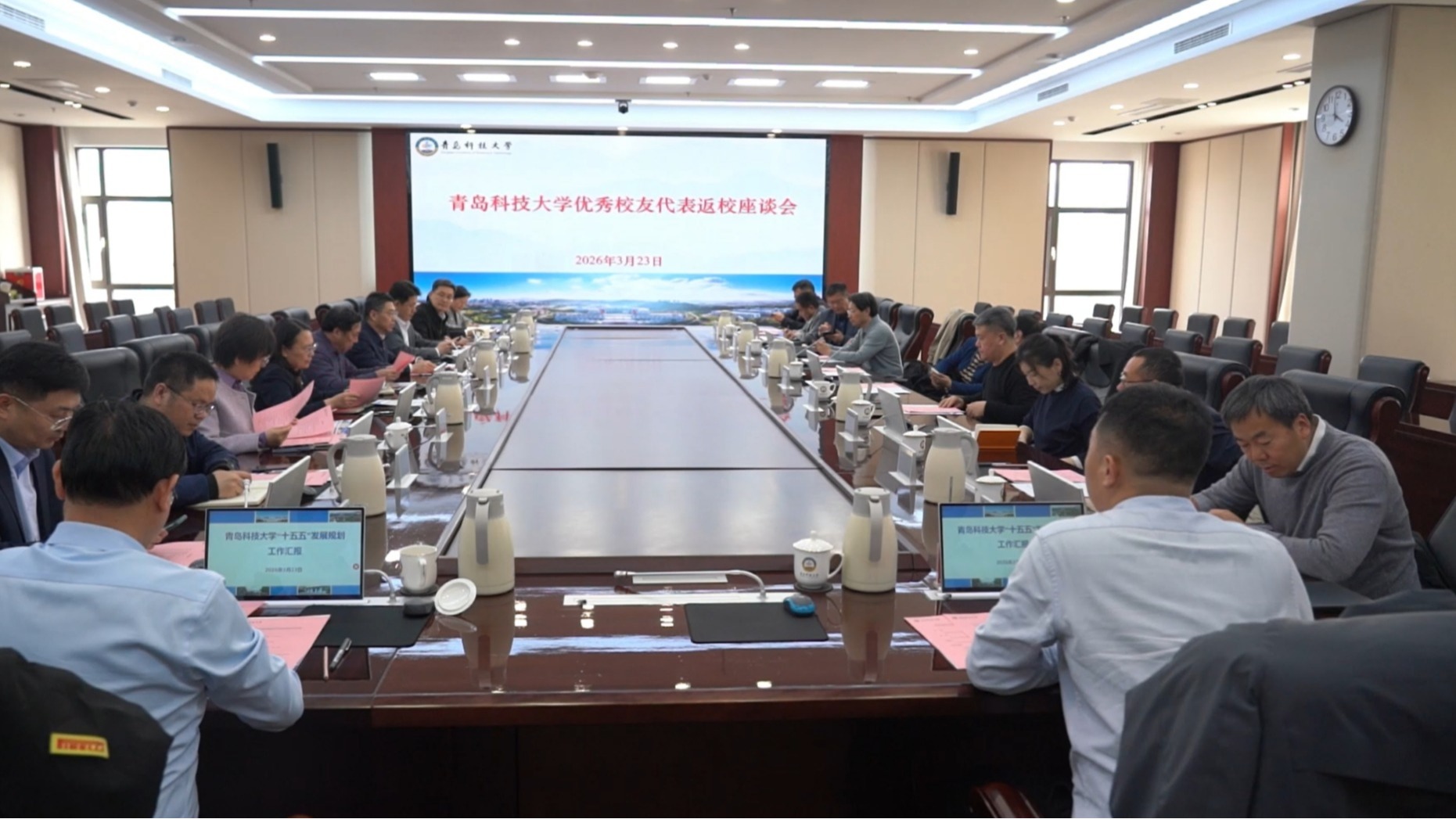近日,青岛科技大学“十五五”规划优秀校友代表座谈会在崂山校区综合服务楼赛轮会议室举行。中国橡胶工业协会会长、橡胶工程1990级校友徐文英,国家橡胶与轮胎工程技术研究中心主任、赛轮集团名誉董事长、管理工程1985级校友袁仲雪等10余位参加橡胶年会的优秀校友代表齐聚一堂,研讨学校发展方向、目标,共叙同窗情谊,共谋母校未来