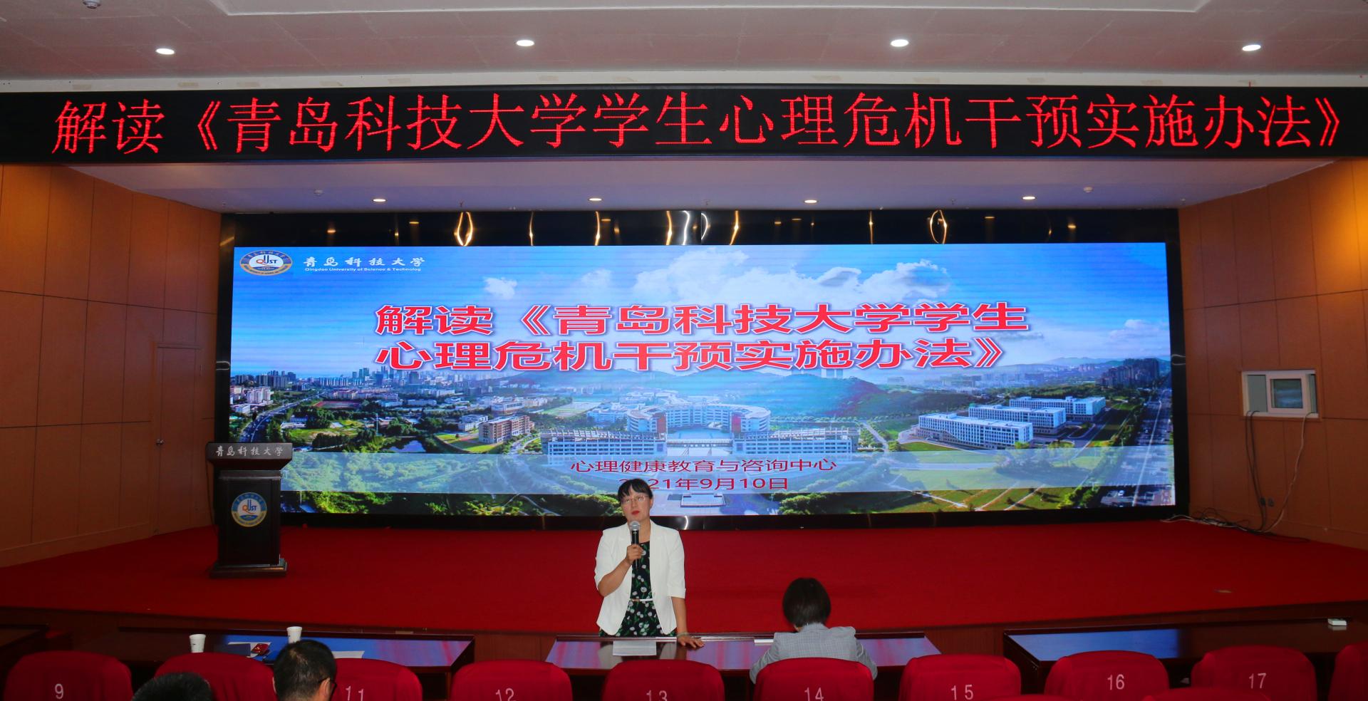 心理中心主任李海玲就《青岛科技大学大学生心理危机干预实施办法》,对心理危机干预的预警机制、干预实施、转介诊疗、跟踪服务等内容进行了详细解读,并同与会人员进行了互动答疑。
