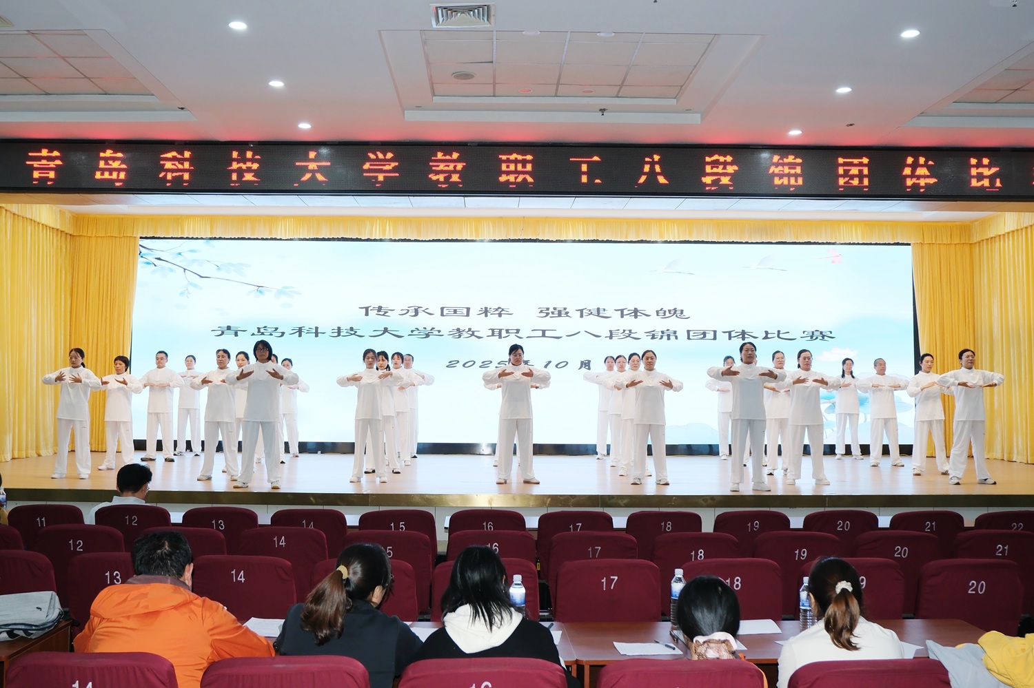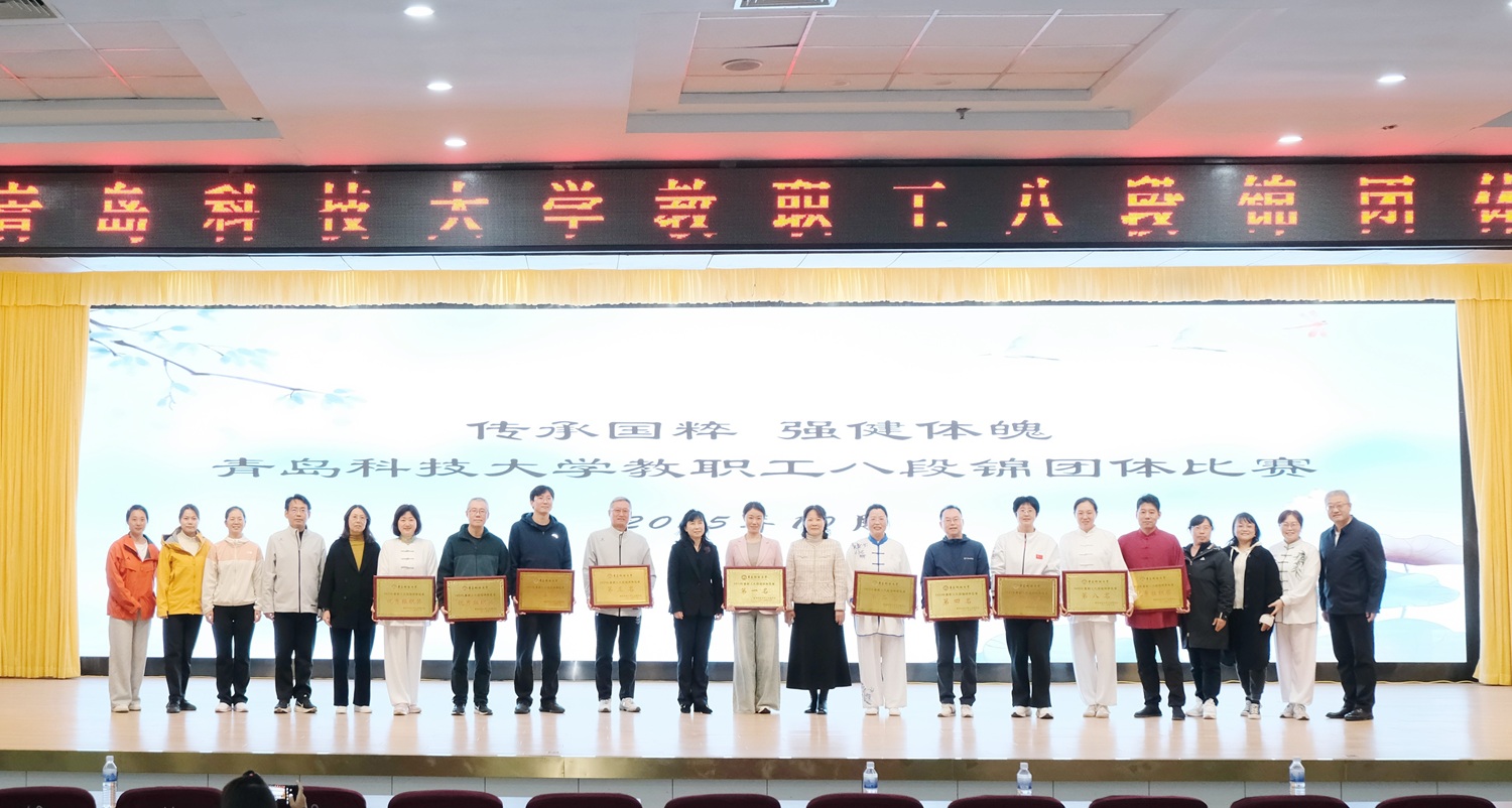 10月28日下午,学校教职工八段锦团体比赛在崂山校区第二报告厅举行。党委副书记沈文青,党委常委、统战部部长秦姣出席活动并为获奖团体颁奖。