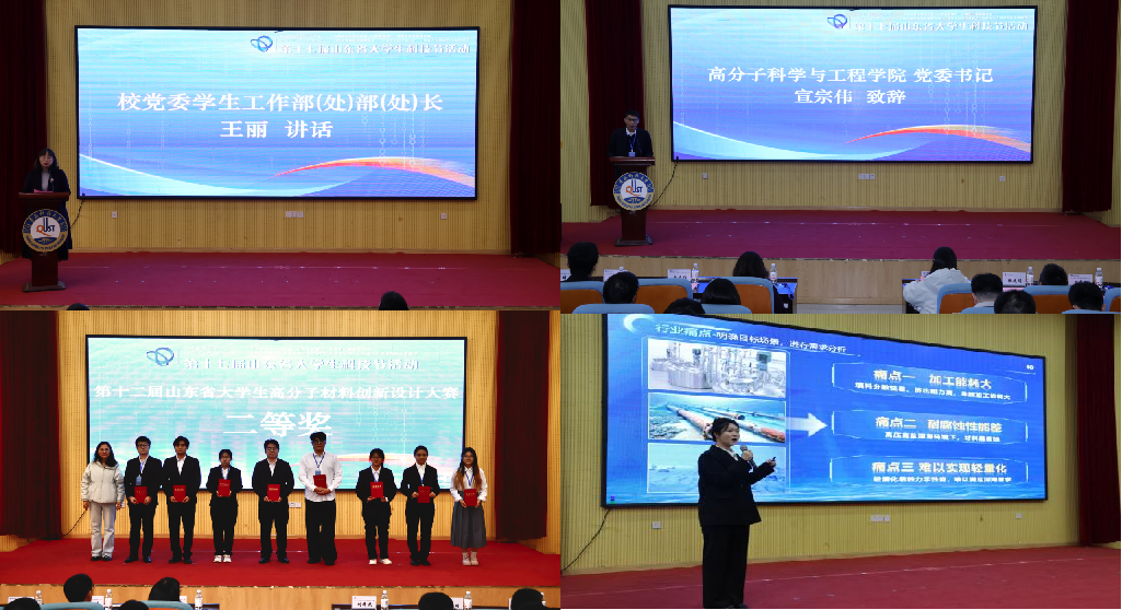 11月28日,由山东省科协、省教育厅、团省委、省发改委、省工信厅、省人社厅主办,青岛市科学技术协会、青岛科技大学承办的第十二届山东省大学生高分子材料创新设计大赛在四方校区举行。