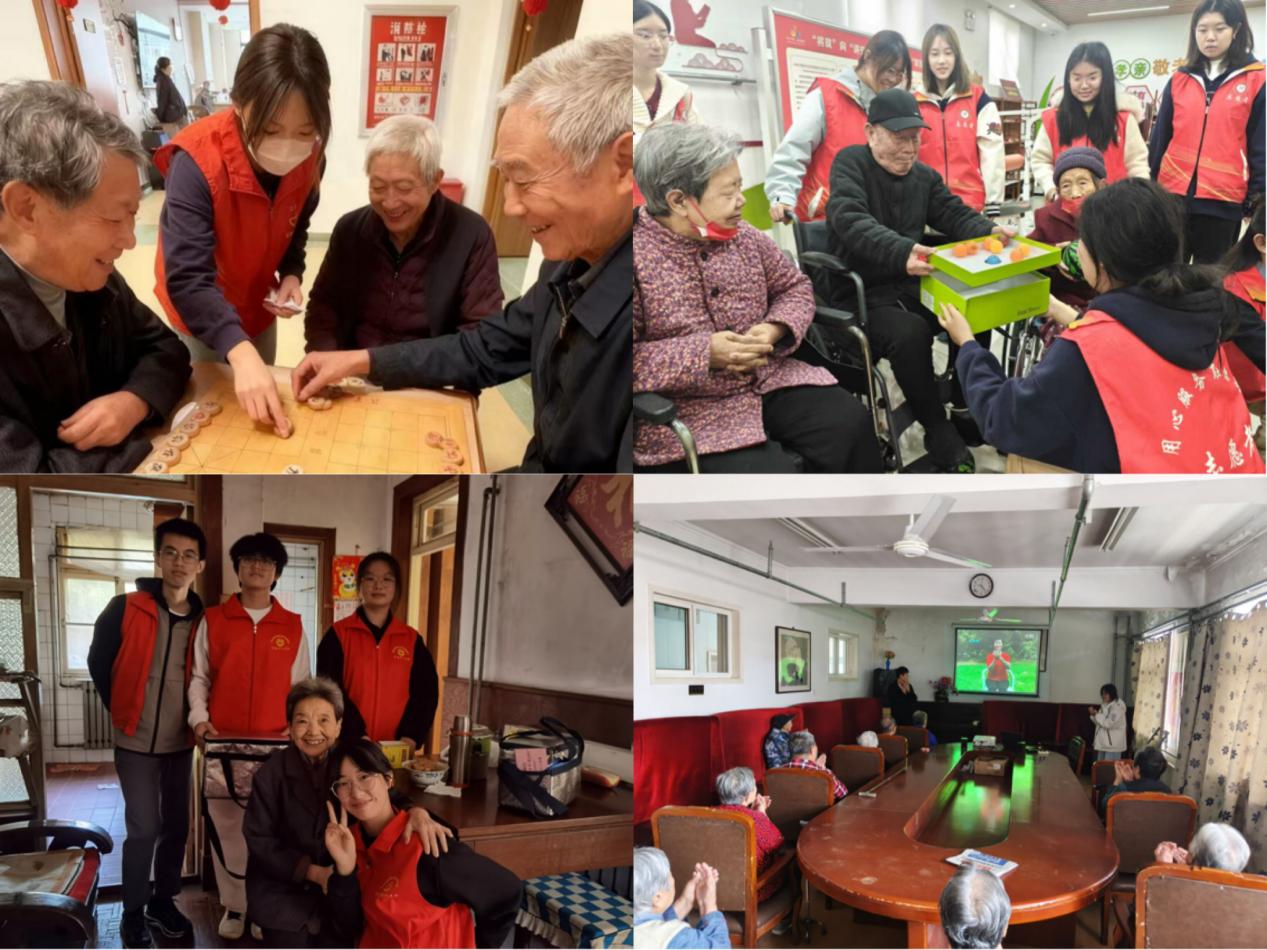 在暖心助老服务领域,各学院聚焦老年群体需求,传递温情与关怀。材料学院依托“趣味科普角”品牌在汇康源老年护理院常态化开展“陪伴夕阳”行动,通过为老人陪护、整理内务及节日特色活动缓解老人孤独感;中德工程学院针“青年实干家”团队对高龄、独居老人推出“智慧助老+温情陪伴”服务,破解数字鸿沟与情感孤独难题;数理学院“雷锋式”团支部则通过“备餐-送餐-陪餐”全流程服务,守护特殊困难老人“舌尖温暖”;高密校区依托“志愿特教中心”特色品牌与西关德邻社区养老服务中心联动,以生日仪式、趣味游戏等实现老少精神同频共振。