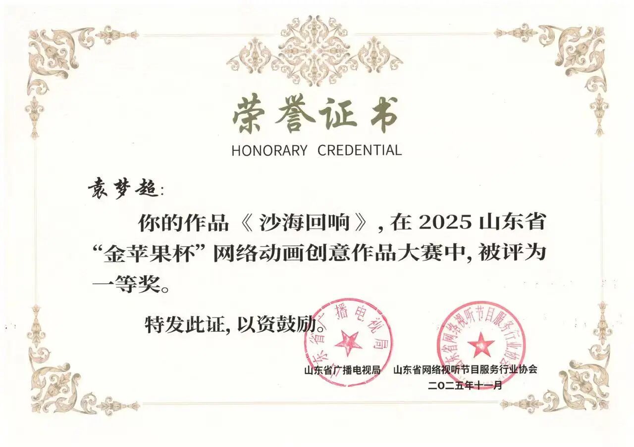 其中,传媒学院学生谭一铭的参赛作品《桥》继在北京国际电影节、北京电影学院学院奖获奖后,再次获得山东最高官方大奖。传媒学院学生袁梦超的参赛作品《沙海回想》获得动画组一等奖,传媒学院学生李闯的参赛作品《山海异闻录》获得漫画组二等奖。