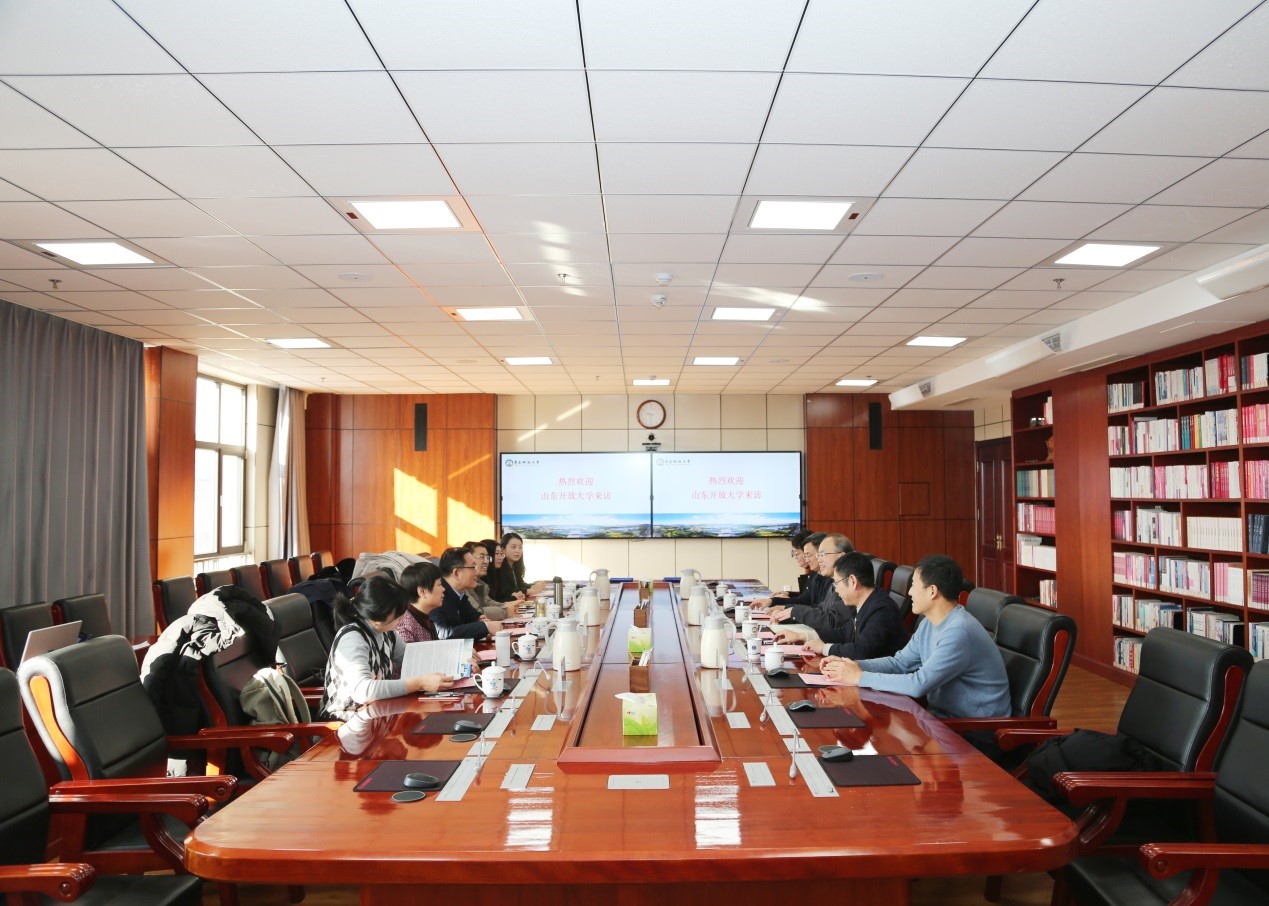1月20日,山东开放大学党委委员、副校长吕文波一行来校调研交流。党委常委、副校长丁林出席交流座谈会。