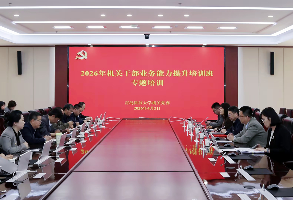 为深入贯彻落实学校“攀高提效”高质量发展要求,切实提升机关干部依法履职、规范管理与服务发展的能力水平,4月2日下午,2026年机关干部业务能力提升培训班首场专题培训在崂山校区赛轮会议室举行。学校党委常委、副校长吕万翔出席会议。党委常委、统战部部长兼机关党委书记秦姣主持会议。