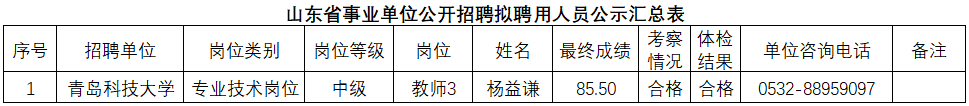 根据事业单位相关规定,按照岗位招聘计划,青岛科技大学组织完成了公开招聘考试、考察、体检等工作,现对拟聘用人员(名单附后)进行公示。