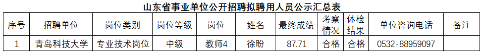根据事业单位相关规定,按照岗位招聘计划,青岛科技大学组织完成了公开招聘考试、考察、体检等工作,现对拟聘用人员(名单附后)进行公示。
