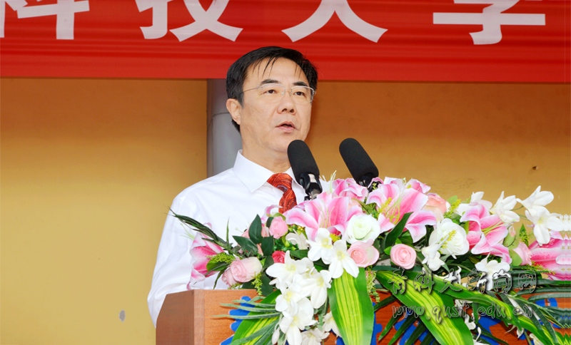二是始终与学校同荣辱、共发展。母校与校友共有一个家、同是一家人,我们是一种命运共同体,休戚相关、荣辱与共。当前,建设“双一流”和“五有”高水平大学,是科大人的共同理想,这个理想正在一步一步地变为现实。希望大家与母校“同声相应、同气相求”,以主人翁的姿态关注、关心、融入学校各项事业发展,为学校大家庭建设贡献力量。希望大家始终铭记“科大情”、铸牢“科大魂”,展示过硬素质,诠释良好形象,维护学校声誉,立起新时代科大人的“新航标”。