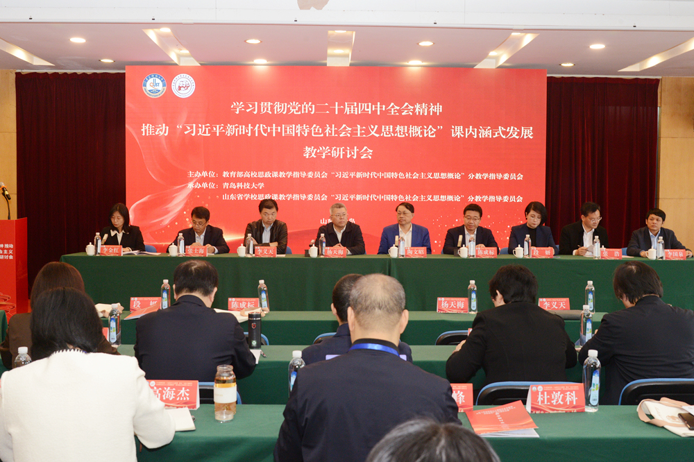 10月26日,“学习贯彻党的二十届四中全会精神推动‘习近平新时代中国特色社会主义思想概论’内涵式发展”教学研讨会在青岛科技大学召开。教育部“习近平新时代中国特色社会主义思想概论”分教学指导委员会副主任委员陶文昭,教育部高校思政课“毛泽东思想和中国特色社会主义理论体系概论”分教学指导委员会副主任委员刘先春,山东省教育厅(省委教育工委)思政处(宣教处)处长陈成标,学校党委书记杨天梅,副校长李金红,党委常委、宣传部部长张洪坤等出席开幕式。