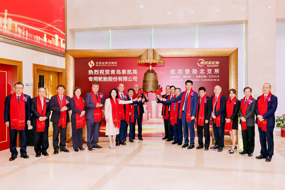 10月28日上午9时30分,青岛科技大学校友领办企业——青岛泰凯英专用轮胎股份有限公司(股票代码:920020)在北京证券交易所成功敲钟上市。校长陈克正应邀参加上市挂牌敲钟仪式,并出席泰凯英轮胎合作发展论坛。