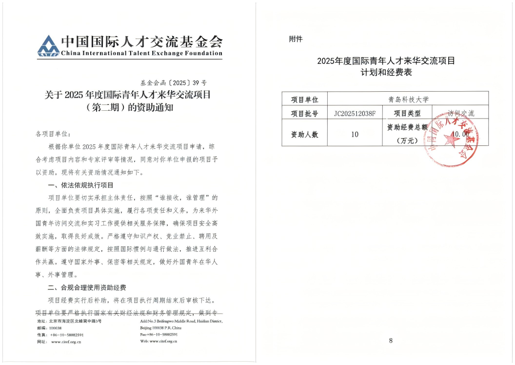 近日,中国国际人才交流基金会公布“2025年度国际青年人才来华交流项目(简称CEP项目)”第二期资助名单,学校申报的“中泰数智云桥”项目再次成功获批。