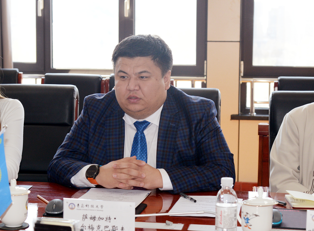 萨姆加特・叶尔梅克巴耶夫高度赞赏了青科大办学成就,并系统介绍了哈萨克国立技术大学的发展历程与办学优势。他表示,哈萨克国立技术大学充分发挥自身的学科特长与地缘优势,致力于培养符合时代需求的创新型人才。作为中哈两国高等教育合作中的重要技术类院校,哈萨克国立技术大学积极响应两国领导人关于深化务实合作的倡议,已在师生交流、联合科研、合作办学等多个层面与中国高校开展了广泛而深入的合作。未来,学校愿进一步推动双方在人才培养、科学研究与社会服务等领域的协同创新,共同助力中哈人文交流与区域发展。