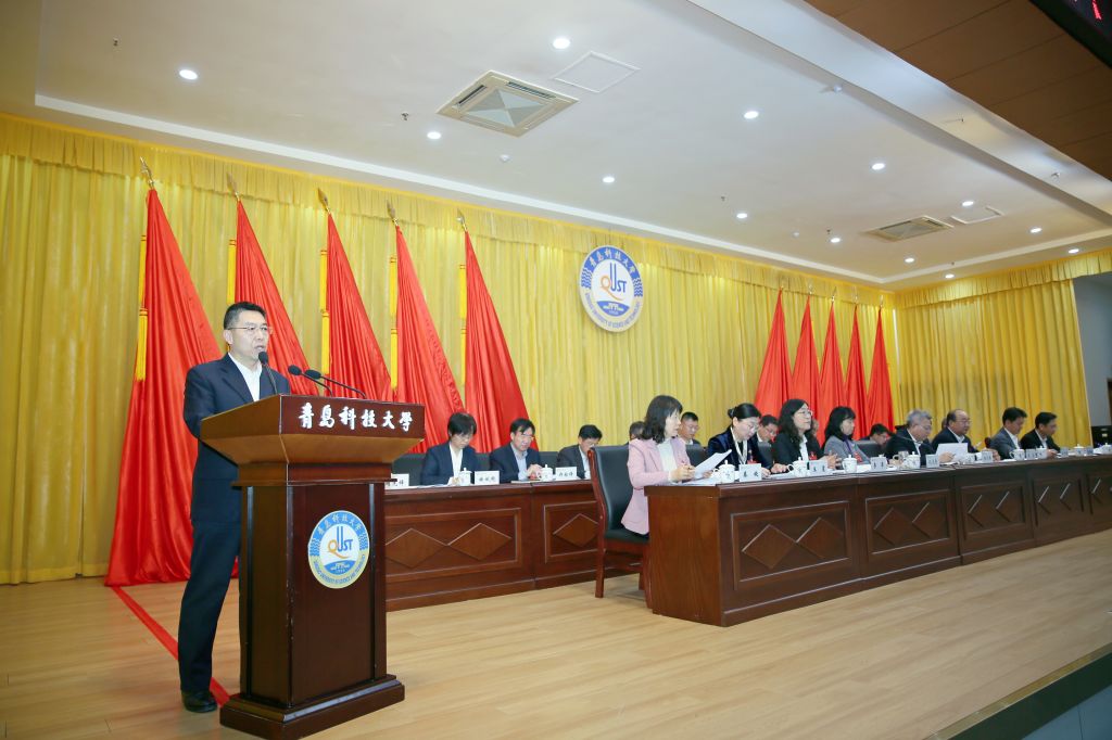 4月11日,学校第八届教职工代表大会第四次会议在崂山校区第二报告厅召开。学校党政领导班子成员杨天梅、李勇、沈文青、吕万翔、李萍、吴明铂、王震、张洪坤、秦姣出席会议。