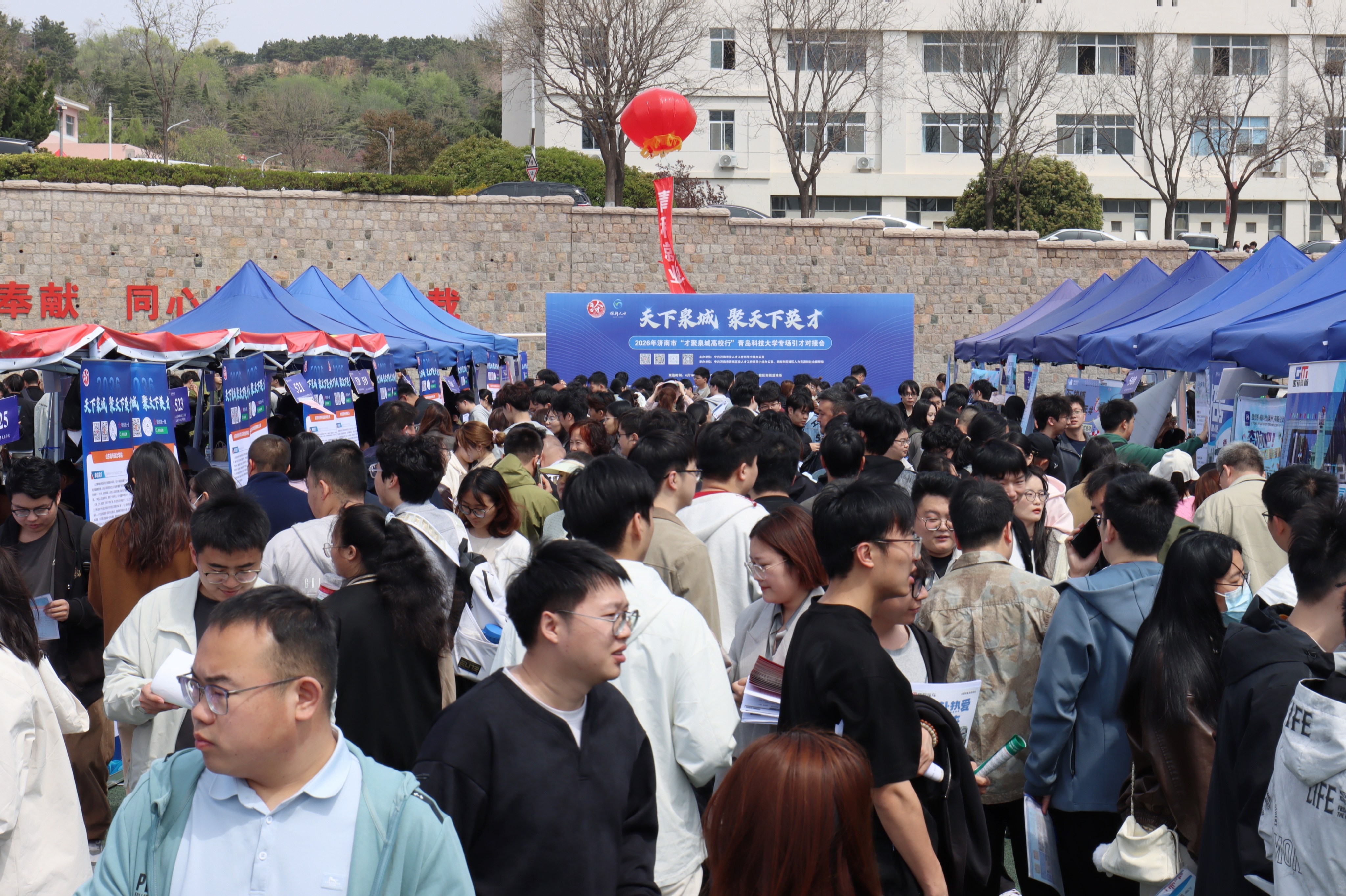 省教育厅高校学生处,青岛市工商联、市公共就业和人才服务中心相关部门负责人,济南市、济宁市、潍坊市、江苏省太仓市人社局等地市相关部门负责人,学校相关部门负责人和各学院(校区)负责人、2026届毕业生辅导员、2026届毕业生及兄弟高校学生参加活动。